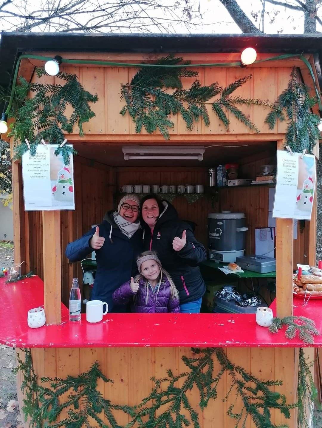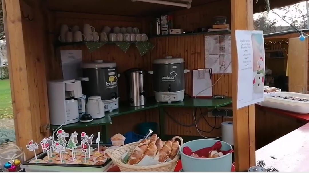 Auf dem Bromischer Weihnachtsmarkt darf der Förderverein nicht fehlen. Hier sind jährlich Kirschglühwein, Kinderpunsch, Muffins und Laugenstangen im Angebot.