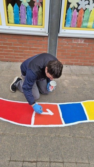 In den letzten Jahren haben Regen, Sonne und Schnee den bunten Markierungen allerdings stark zugesetzt, sodass manche Spiele kaum noch zu erkennen waren. Deshalb hat der Förderverein gemeinsam mit unserer Schulgemeinschaft beschlossen, die Hüpfspiele gründlich aufzufrischen und zum Teil sogar neu zu gestalten.